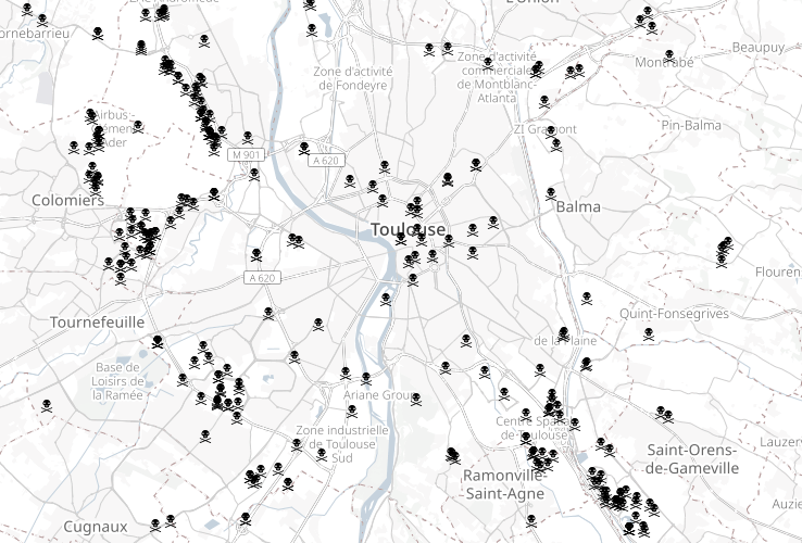 Cette carte recense des centaines d’entreprises, sous-traitants, écoles, laboratoires, agences gouvernementales,… participant à cette merde dans la région toulousaine.